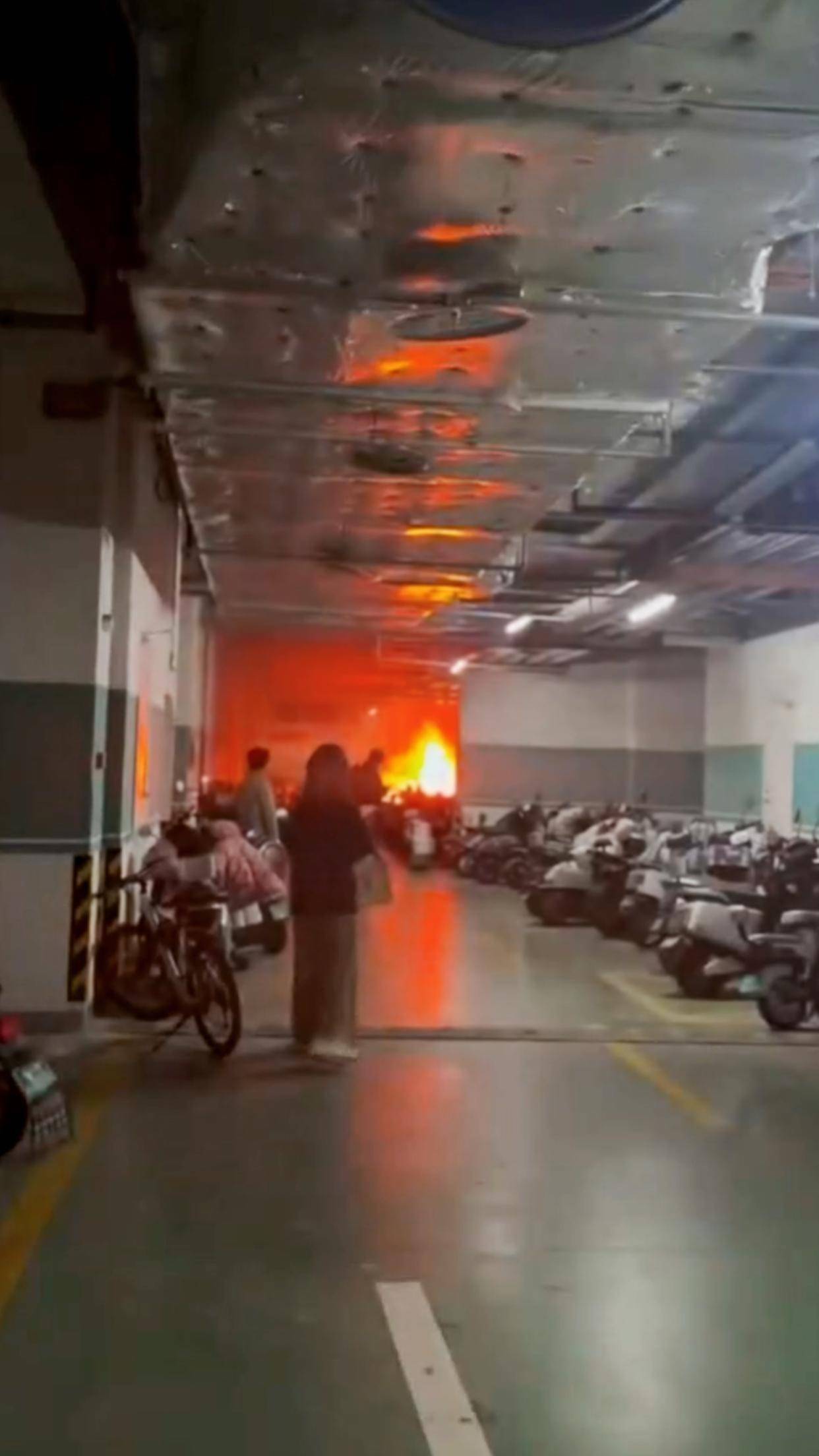 害怕吗?起火位置一边是配电箱,一边是数辆电动车,要知道火焰的高温下电池易爆燃,伤害性极强。